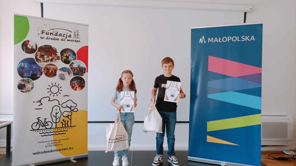 Poza nagrodami indywidualnymi oraz drobnymi upominkami dla każdego uczestnika konkursu, nagrodą główną była wycieczka dla wybranych uczniów ze szkoły do której uczęszcza zwycięzca konkursu. Celem wycieczki był Pasaż Odkryć, który mieści się na tarnowskim rynku. Podczas zwiedzania Prezes Fundacji W drodze do marzeń wręczył dyplomy i nagrody laureatom ze szkoły w Tworkowej. Dzieci odwiedzające Pasaż Odkryć z zaciekawieniem oglądały ekspozycje i uczestniczyły w warsztatach. To idealne zwieńczenie konkursu, którego celem było pobudzanie swojej wyobraźni oraz pogłębianie wiedzy. Jeszcze raz gratulujemy laureatom konkursu, życzymy ciekawych i bezpiecznych wakacji oraz zachęcamy do wszelkich inicjatyw mających na celu rozwijanie swoich talentów i zdobywanie wiedze. Projekt został zrealizowany przy wsparciu finansowym Województwa Małopolskiego.